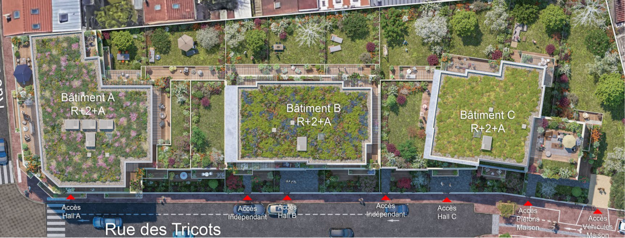 • 100% des logements avec un espace extérieur privatif : jardin,