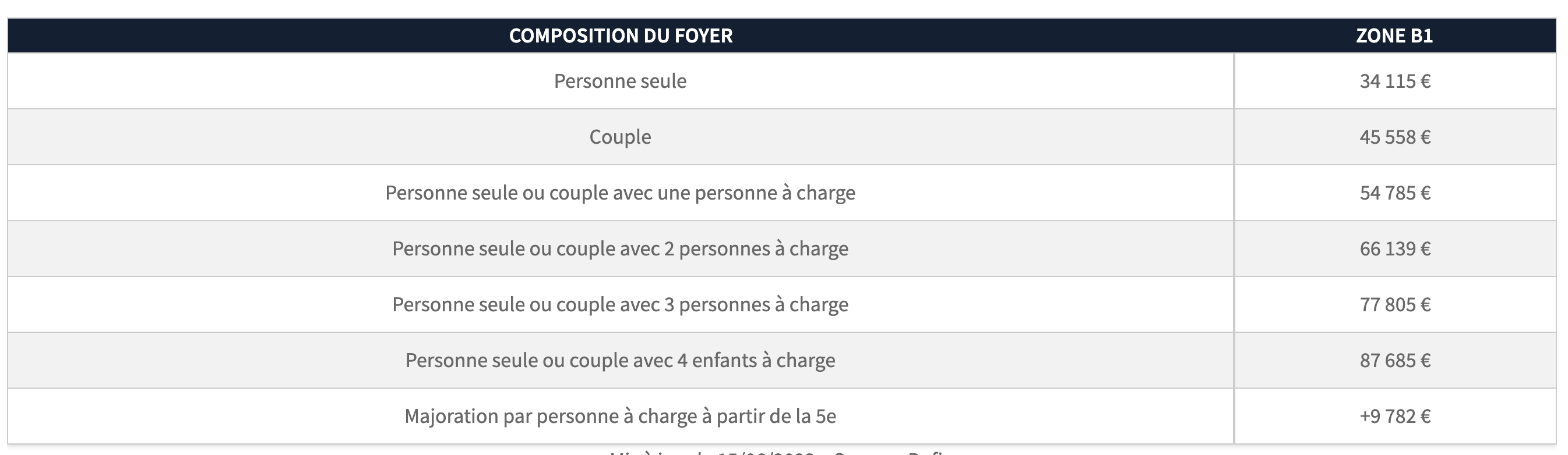 Tableau des plafonds de loyer en région bordelaise