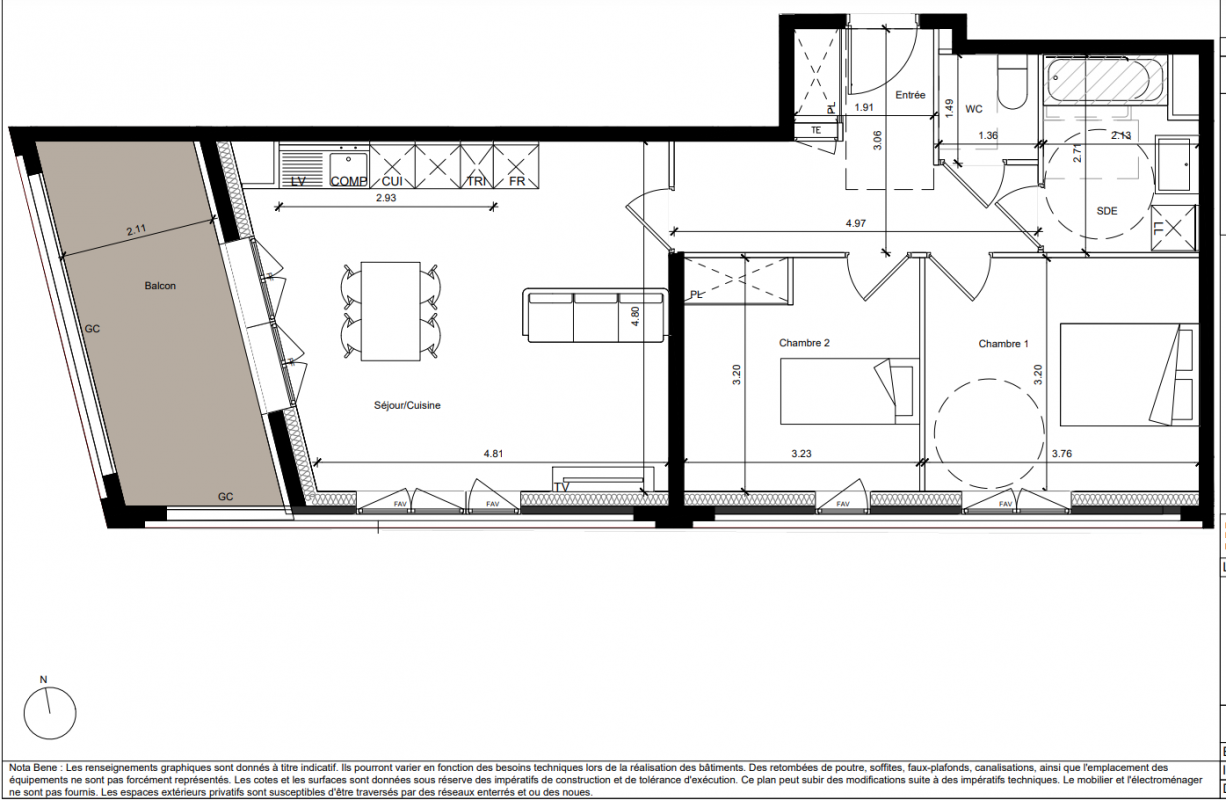 338 000€ Appt. T3 64.14m2 4ème