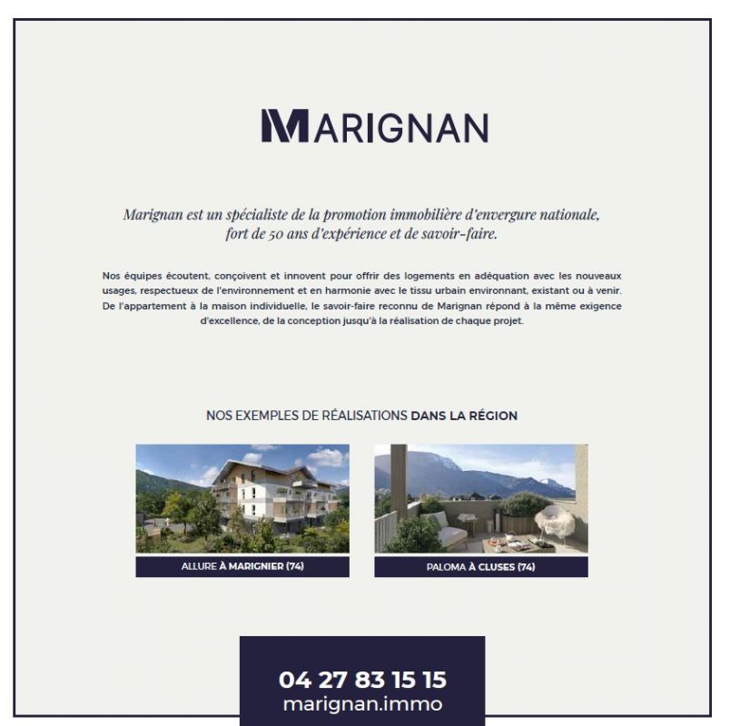 Achetez votre appartement neuf au cœur de La Roche-sur-Foron ! Idéalement située avenue de la Gare, face à la gare SNCF et au Léman Express, notre nouvelle résidence offre une accessibilité remarquable vers Annemasse et Genève, tout en profitant du calme et du charme d'une petite ville au pied des montagnes.La résidence propose 32 appartements du 2 au 4 pièces, pensés pour répondre à tous les styles de vie. Chaque logement bénéficie d'une belle exposition et d'une grande luminosité, prolongée par un espace extérieur privatif : balcon, terrasse ou jardin selon les étages. Au dernier étage, de superbes terrasses offrent un panorama dégagé sur les montagnes environnantes, invitant à la détente et à la contemplation.Tous les appartements disposent d'un parking privatif et d'un cellier, pour un quotidien simplifié. Des prestations soignées garantissent un cadre de vie agréable, durable et économe en énergie. À deux pas, vous profitez de tous les commerces du centre-ville, de services de santé, de restaurants, d'établissements scolaires et de nombreux équipements sportifs et culturels. Les marchés locaux et les commerces de proximité participent à une atmosphère conviviale et dynamique. Avec la gare en face de votre porte, rejoignez Annemasse ou Genève rapidement grâce au Léman Express, tout en profitant d'un réseau de bus et de l'accès rapide aux grands axes routiers. Un emplacement idéal pour concilier vie professionnelle et personnelle sans compromis. Ville médiévale au cœur de la Haute-Savoie, La Roche-sur-Foron séduit par son riche patrimoine, sa vie locale animée et son cadre naturel d'exception. Entre lacs et montagnes, elle offre un équilibre parfait entre douceur de vivre, proximité des grandes métropoles et nature préservée. Contactez dès maintenant un de nos conseillers pour être parmi les premiers à choisir votre appartements neufs à LA ROCHE SUR FORON et bénéficier des meilleures conditions pour votre achat !