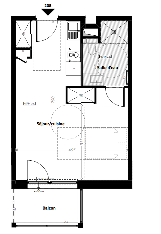 168 840€ Appt. Studio 33.06m2 0-RDC