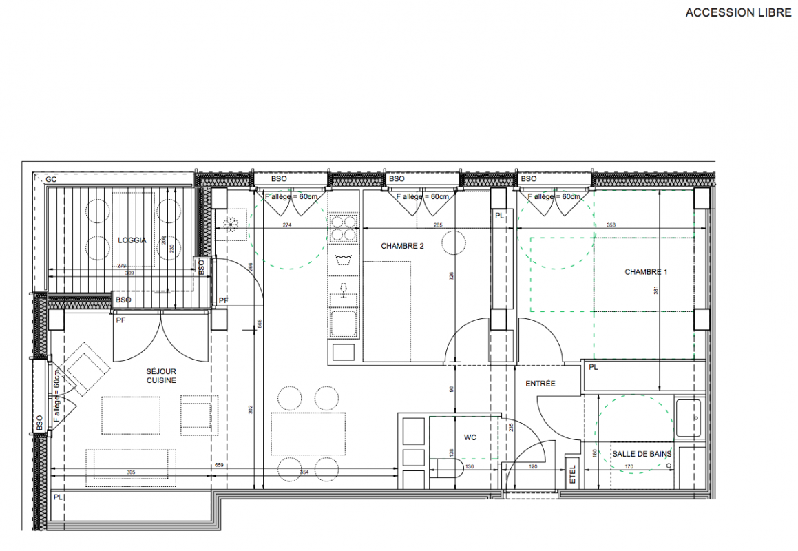 380 000€ Appt. T3 61.1m2 7ème