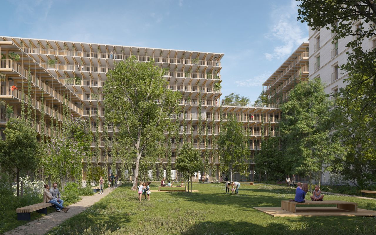 UN SIGNAL CONTEMPORAIN À la croisée de l’allée Christine Pascal et de la rue Françoise Sagan, Néo7 s’élève comme un signal fort, vert et contemporain, qui se détache en ligne de crête du qu...