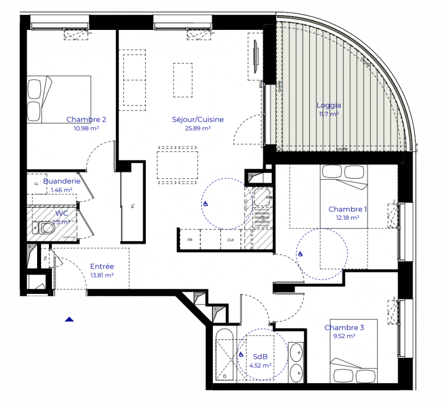 249 100€ Appt. - 65.23m2 3ème