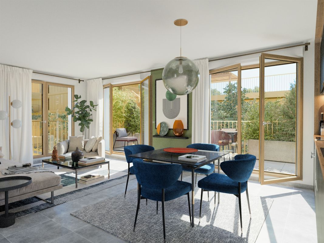 Arborant une architecture contemporaine, les quatre immeubles de la résidence s’organisent autour d’un mail de verdure soigné. Du studio au 5 pièces, les appartements offrent une belle variété de surfaces et ouvrent sur un balcon, une terrasse ou, pour certains, un rooftop.