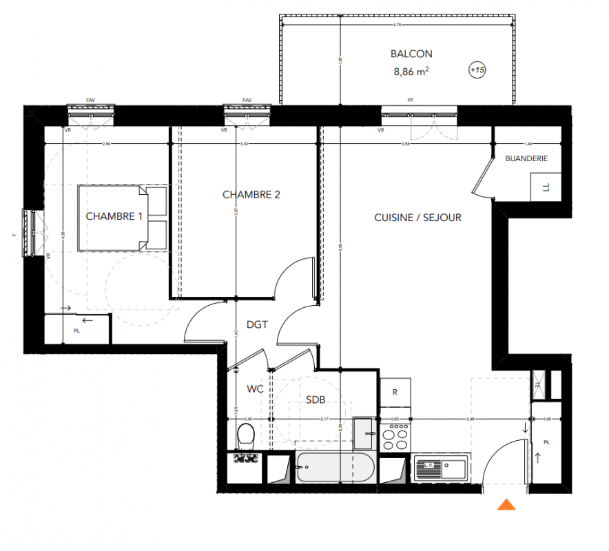 249 000€ Appt. T3 58.75m2 2ème