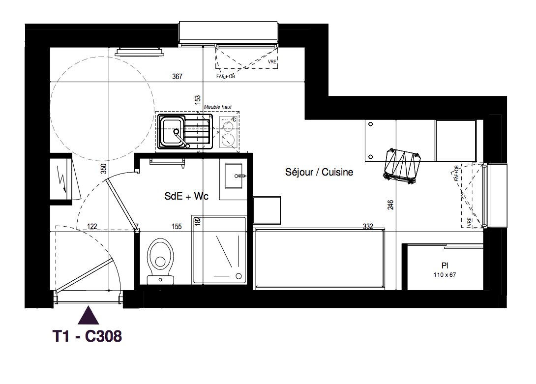 114 247€ Appt. Studio 17.91m2 1er