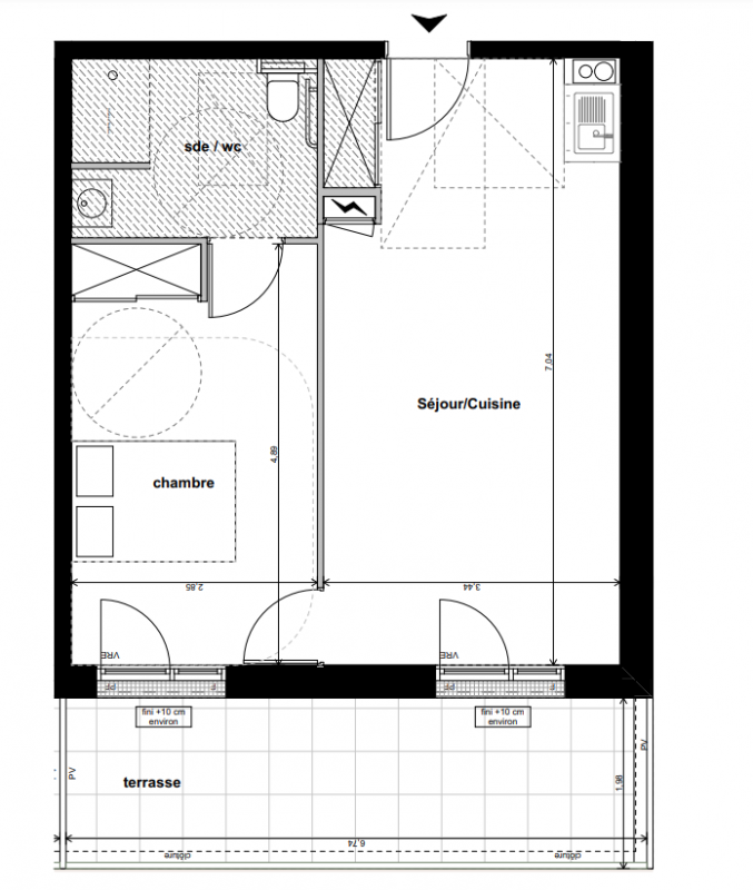 Les studios tous meublés et équipés, sont complétés par des espaces partagés : cuisine et salle commune, terrasse paysagée et laverie.