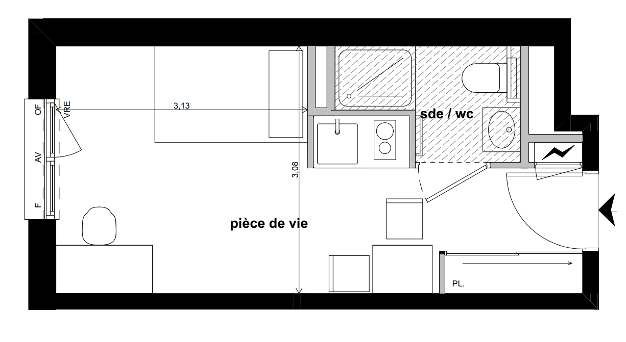 Les studios tous meublés et équipés, sont complétés par des espaces partagés : cuisine et salle commune, terrasse paysagée et laverie.