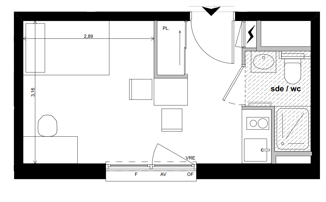 Les studios tous meublés et équipés, sont complétés par des espaces partagés : cuisine et salle commune, terrasse paysagée et laverie.