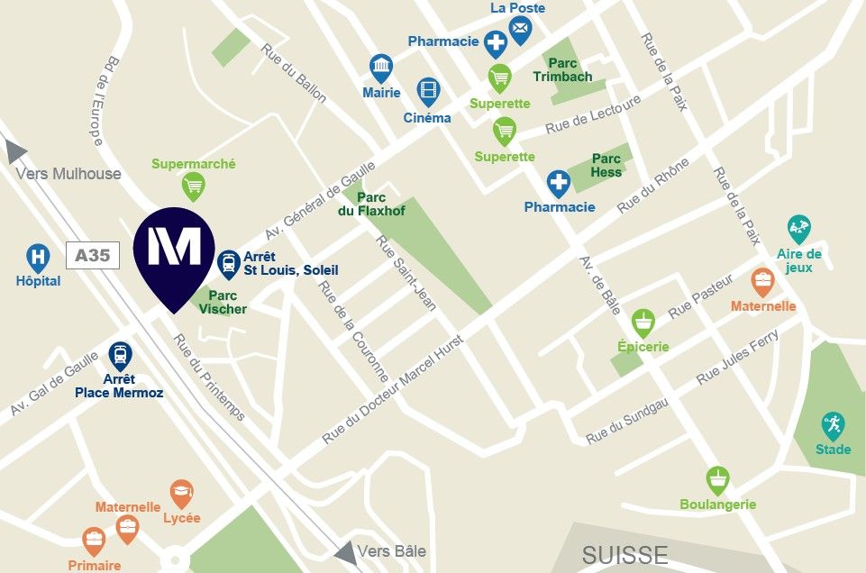Situation : C’est dans le Sud Alsace, au carrefour de la Suisse et de l’Allemagne, que L’Archipel-3F prend racine ; Situé au cœur de la ville de Saint-Louis dans un environnement privilégié...
