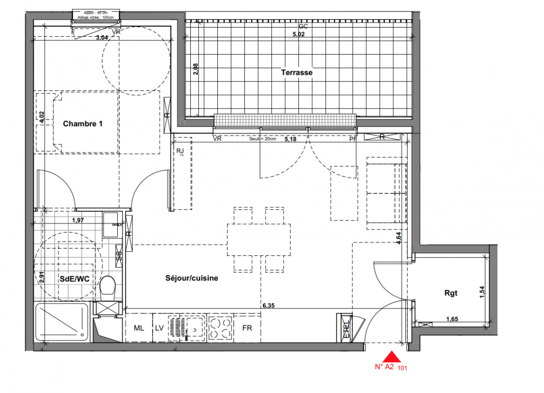 | Voir | Disponible | 184 000€ | A1-101 | Appt. | T2 | 44.22m2 | 1er | Disponible | 184 000€ | Voir |