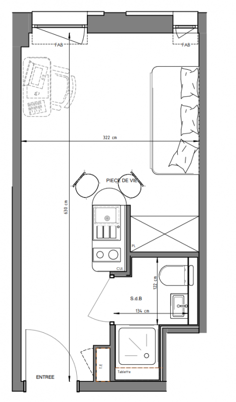89 173€ Appt. Studio 17.34m2 0-RDC