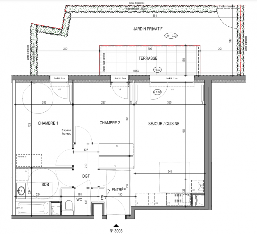 | Voir | Disponible | 281 000€ | 3002 | Appt. | T3 | 61.6m2 | 0-RDC | Disponible | 281 000€ | Voir |