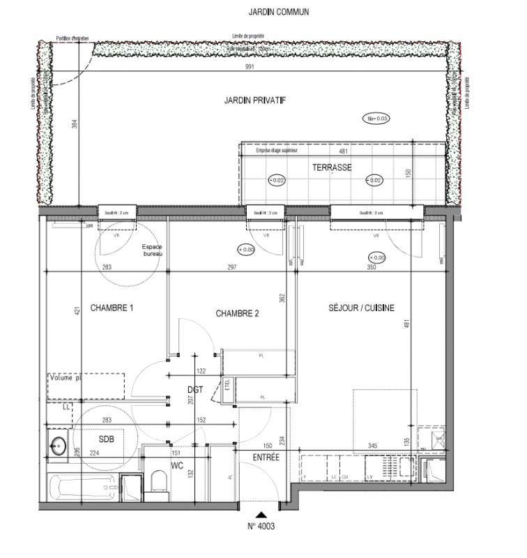 | Voir | Disponible | 281 000€ | 3002 | Appt. | T3 | 61.6m2 | 0-RDC | Disponible | 281 000€ | Voir |