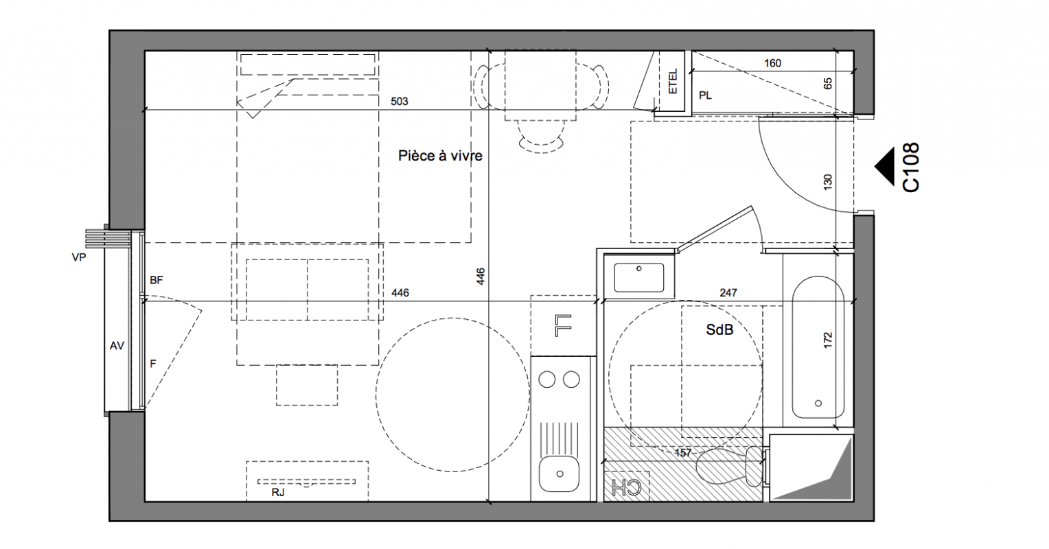 158 000€ Appt. Studio 28.21m2 2ème