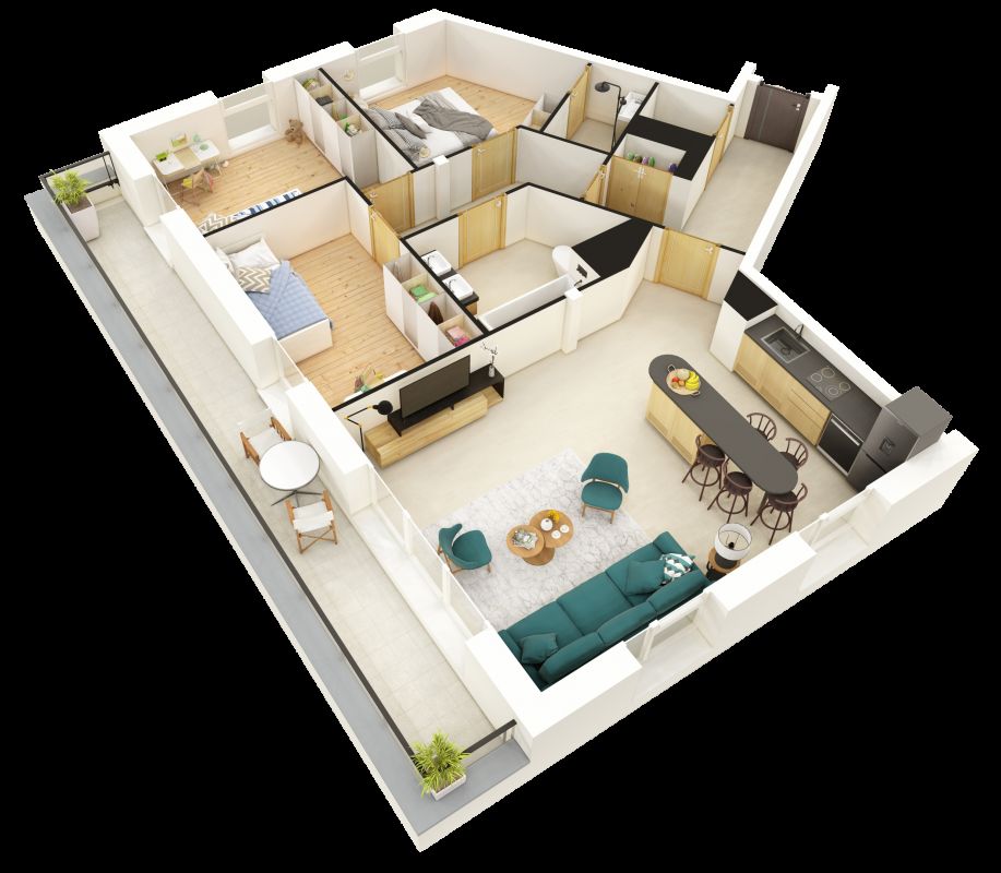 La résidence se compose de 36 appartements neufs, du studio au 4 pièces, répartis sur deux bâtiments. La majorité des logements dispose d'un balcon ou d'une terrasse, de larges baies vitrées en PVC et d'une double exposition, offrant confort et luminosité.