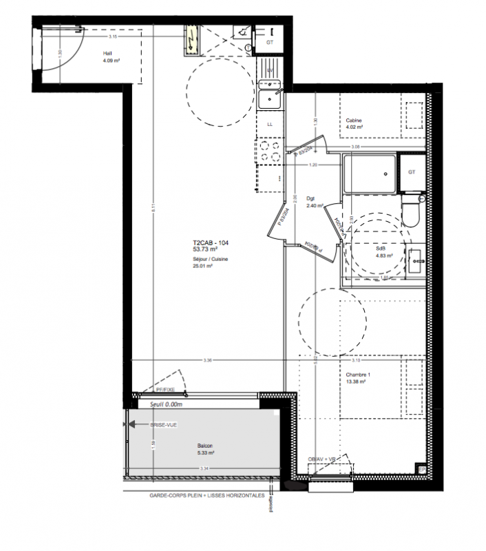 218 490€ Appt. T2 53m2 0-RDC
