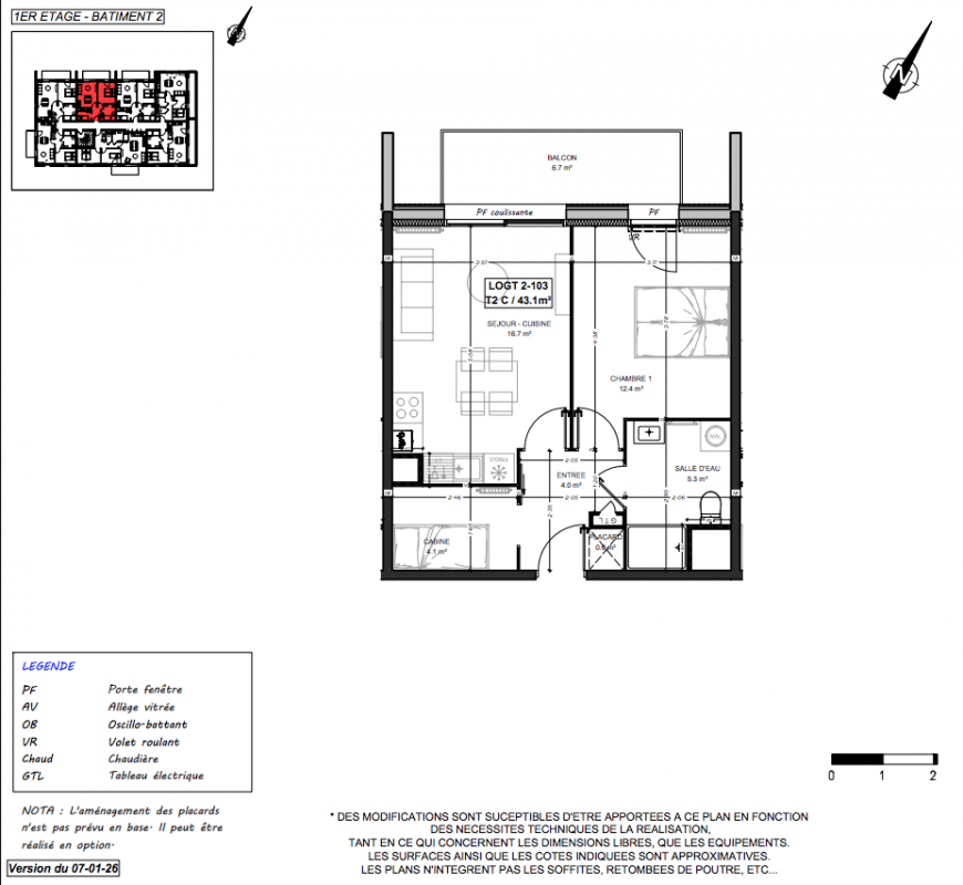 | Voir | Disponible | 222 000€ | 2-102 | Appt. | T2 | 43.7m2 | 1er | Disponible | 222 000€ | Voir |