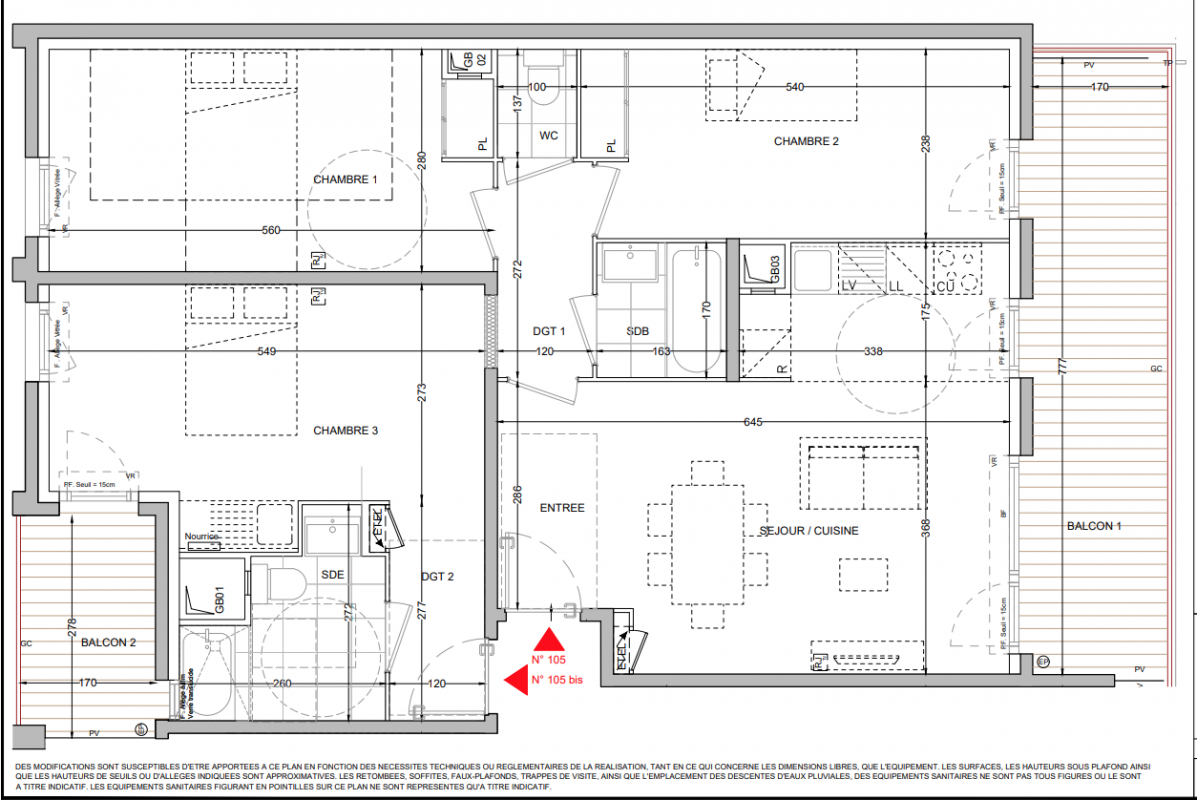 Derniers 2 pièces d'environ 45 m² avec balcon.Appartement 3 pièces d'environ 60 m² avec balcon d'au moins 10 m² et parking pour tous !Appartements 4 pièces EVOLUVIE (concept T3 + T1 indépendant) de 87 m² avec balcon de 13 m² et parking pour tous !