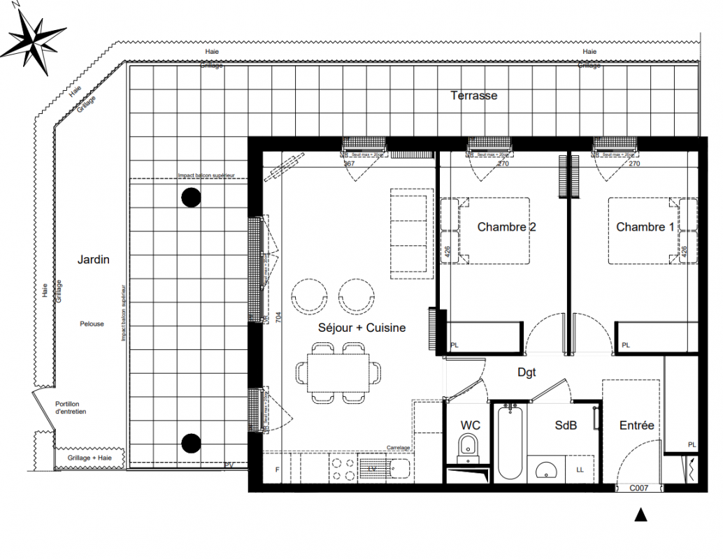 | Voir | Disponible | 373 000€ | C004 | Appt. | T3 | 59.1m2 | 0-RDC | Disponible | 373 000€ | Voir |