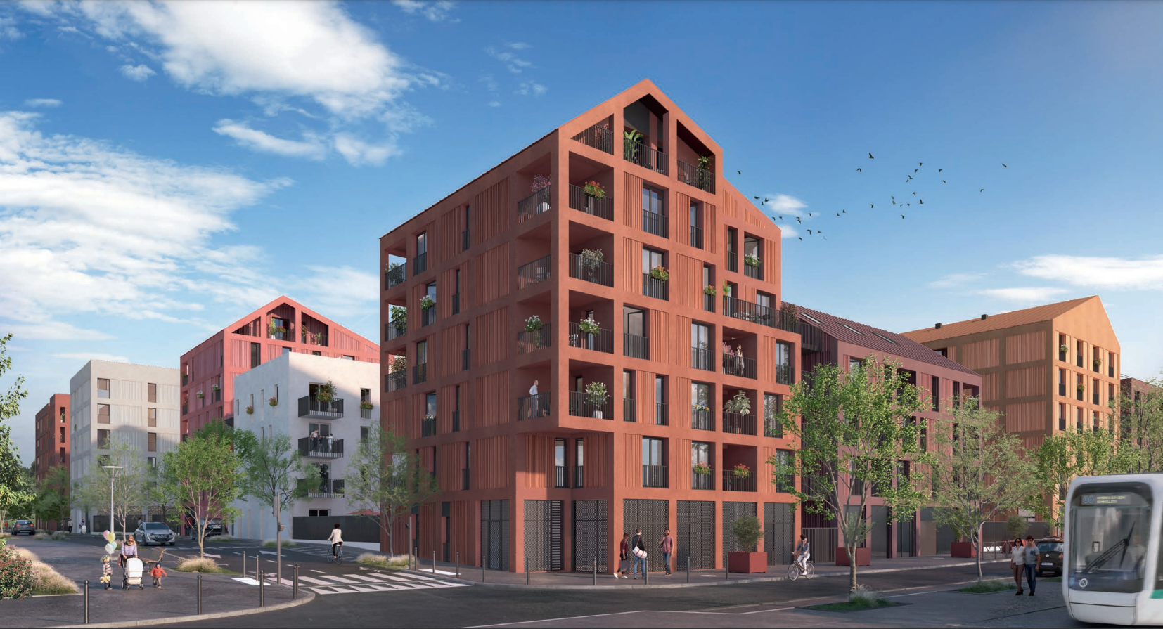 Votre futur programme neuf propose des appartements du studio au 5 pièces duplex, avec balcons ou terrasses et même des jardins privatifs. Les prestations sont soignées : un revêtement de sol en carrelage 45 x 45 cm et parquet stratifié avec choix du coloris dans la gamme, des volets roulants électriques dans toutes les pièces, un confort thermique et acoustique renforcé, le chauffage collectif urbain, gage d'économies et de sobriété énergétique, ainsi qu’une salle de bains aménagée avec meuble vasque intégré, baignoire ou douche, sèche-serviettes, miroir rétro-éclairé et faïence murale. Pour plus de sécurité, des portes palières serrure 5 points, un vidéophone écran couleur et des places de stationnement en sous-sol pour tous les logements, équipées de bornes de recharge pour véhicules électriques.