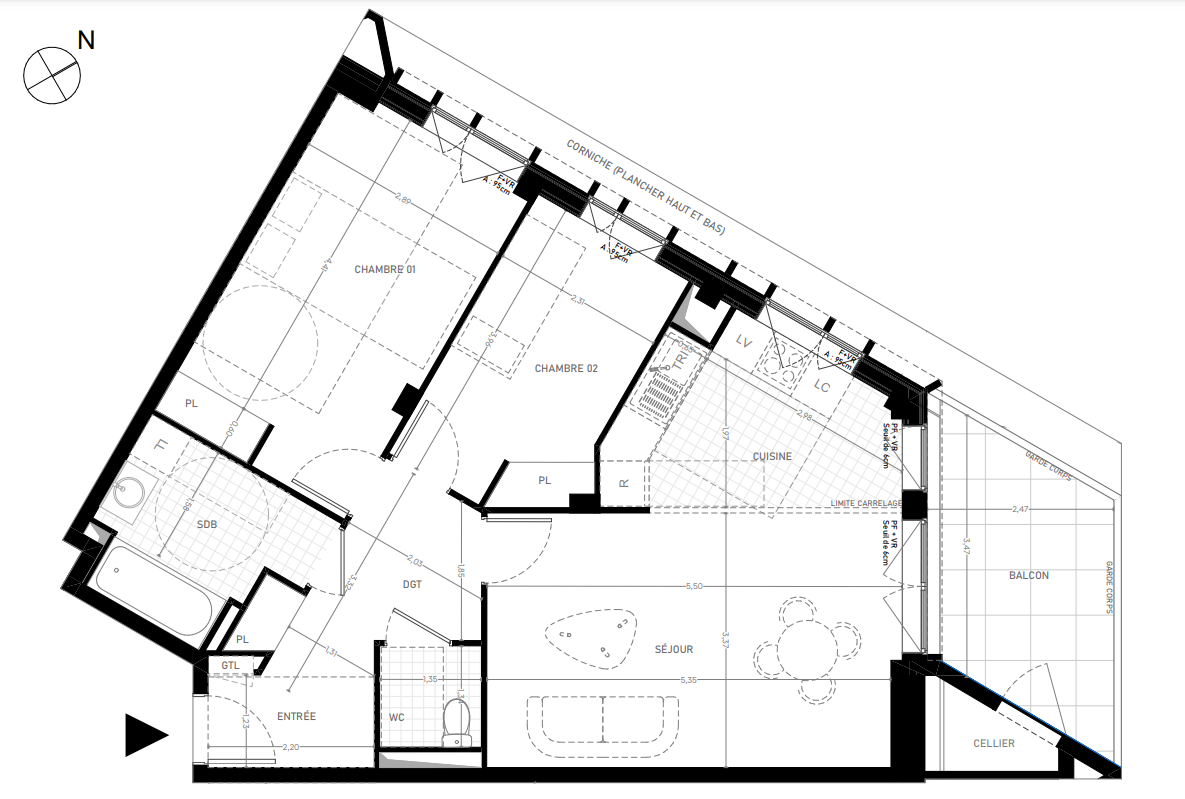 398 000€ Appt. T3 65.96m2 5ème