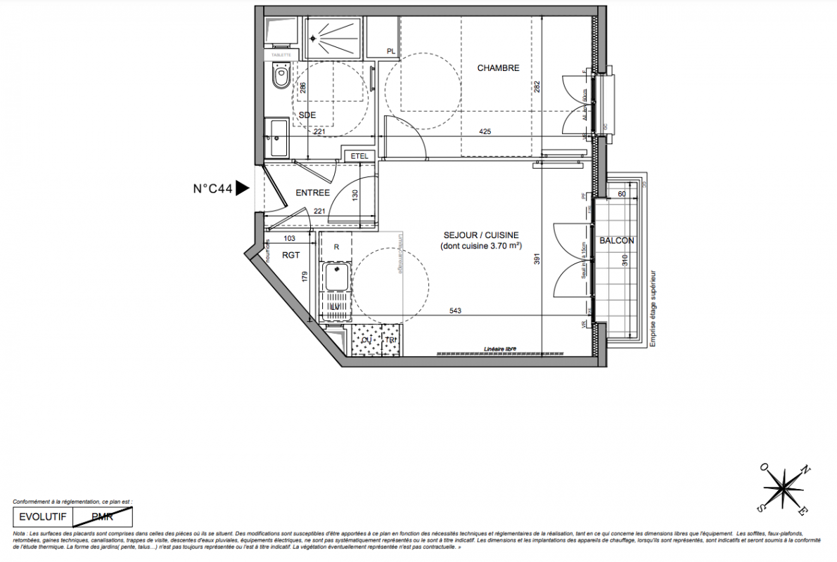 Portes intérieures des logements pleine hauteur 2.14m