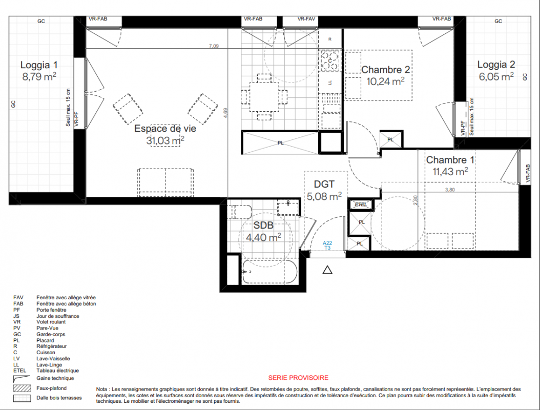 383 100€ Appt. T3 63.47m2 7ème