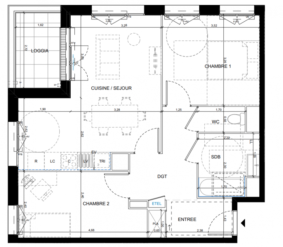289 934€ Appt. T3 58.5m2 3ème