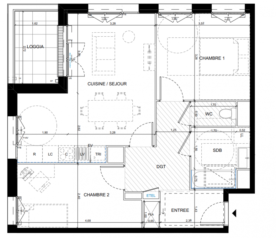 289 934€ Appt. T3 58.5m2 3ème