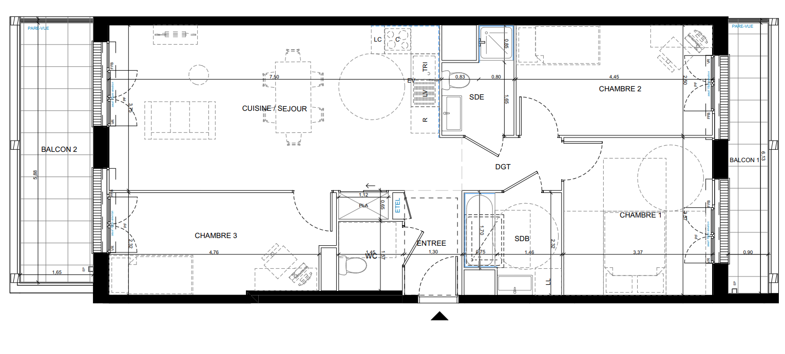 388 891€ Appt. T4 89.98m2 6ème