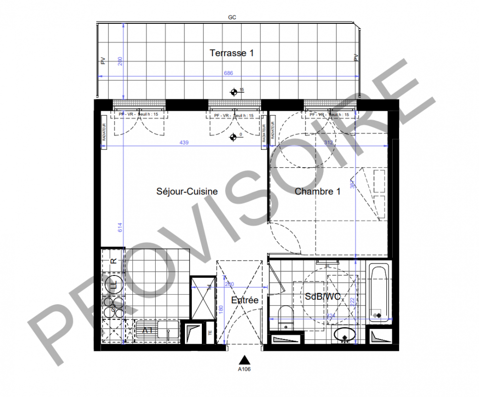 261 611€ Appt. T2 53.3m2 0-RDC