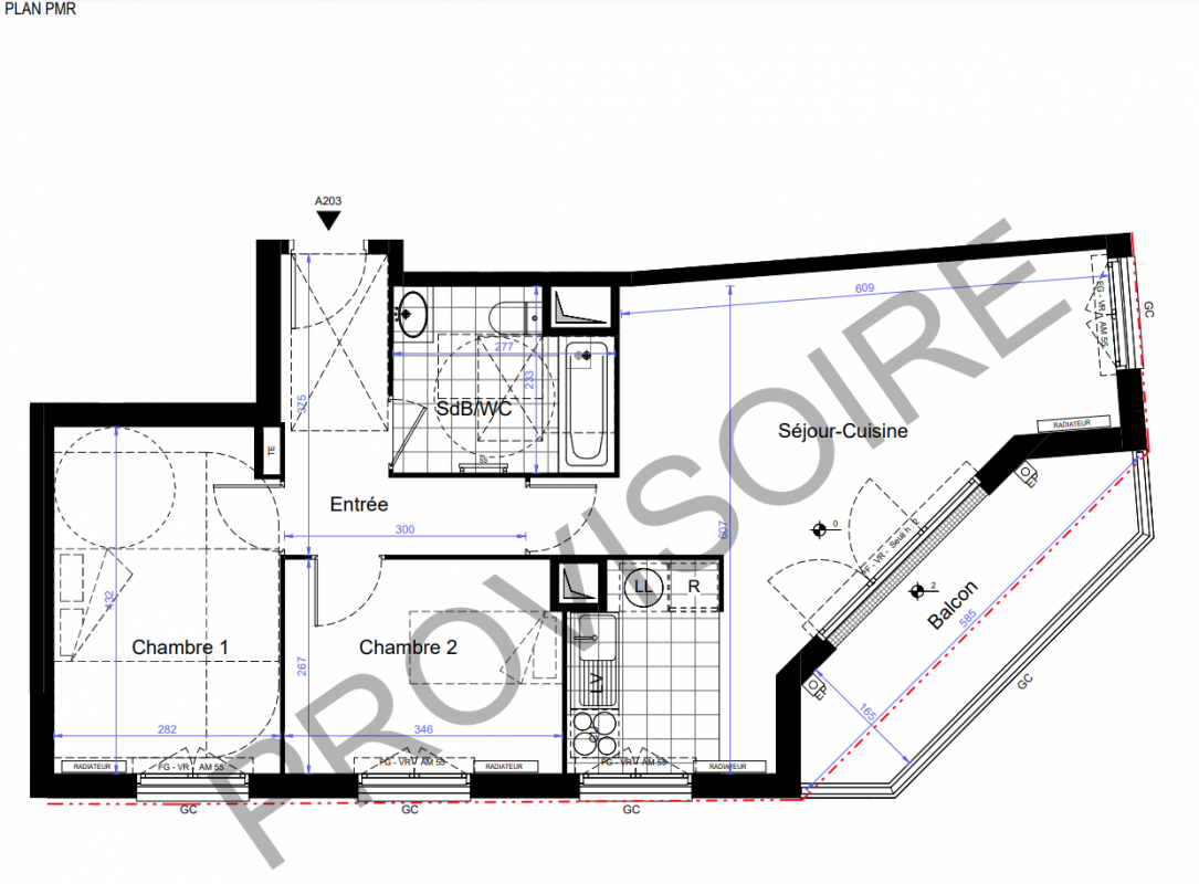 332 133€ Appt. T3 65.45m2 6ème
