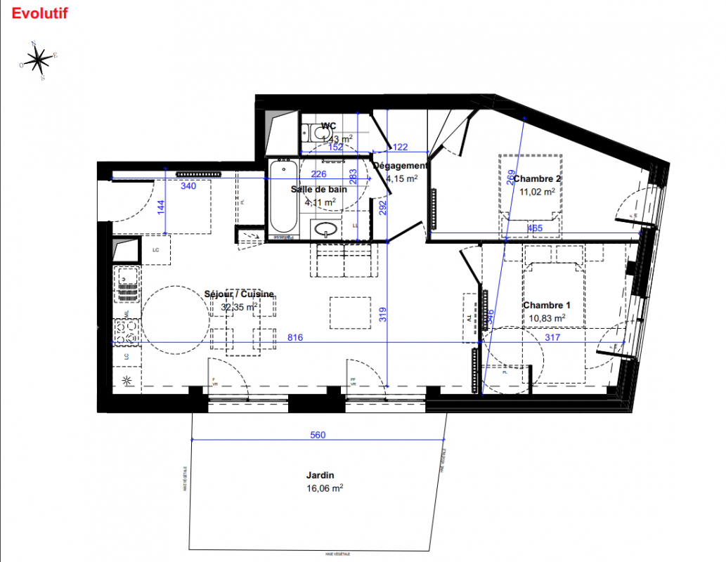 404 000€ Appt. T3 65.9m2 0-RDC