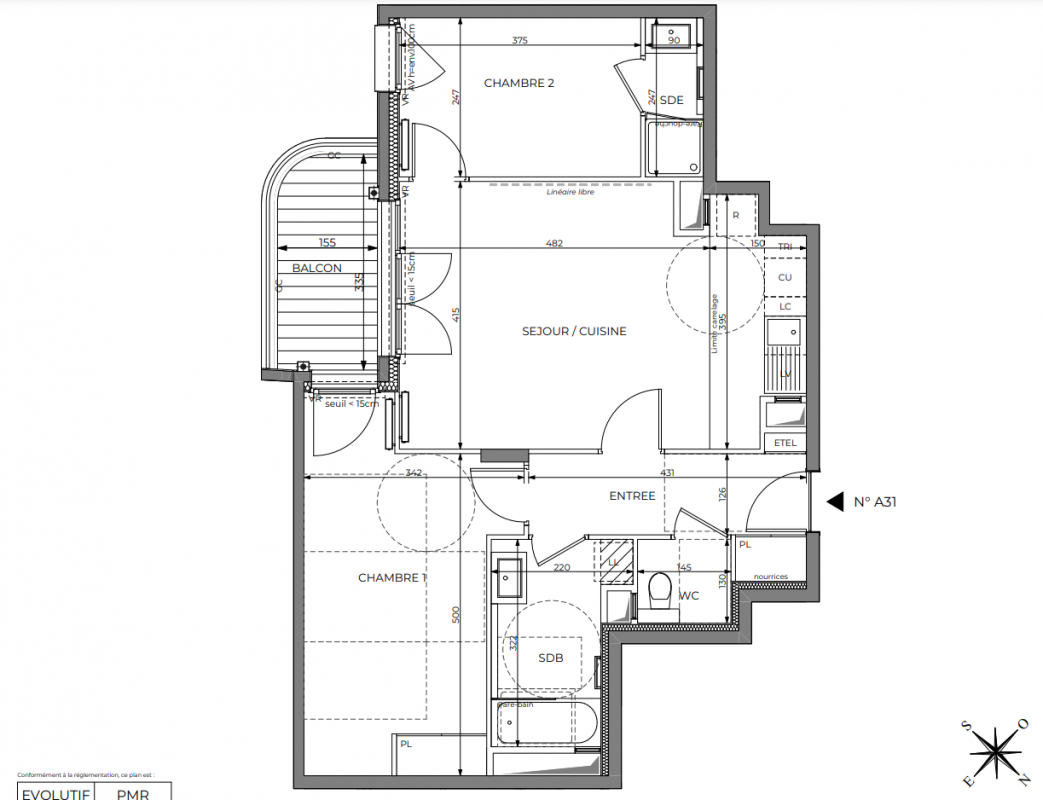 454 977€ Appt. T3 65.91m2 2ème