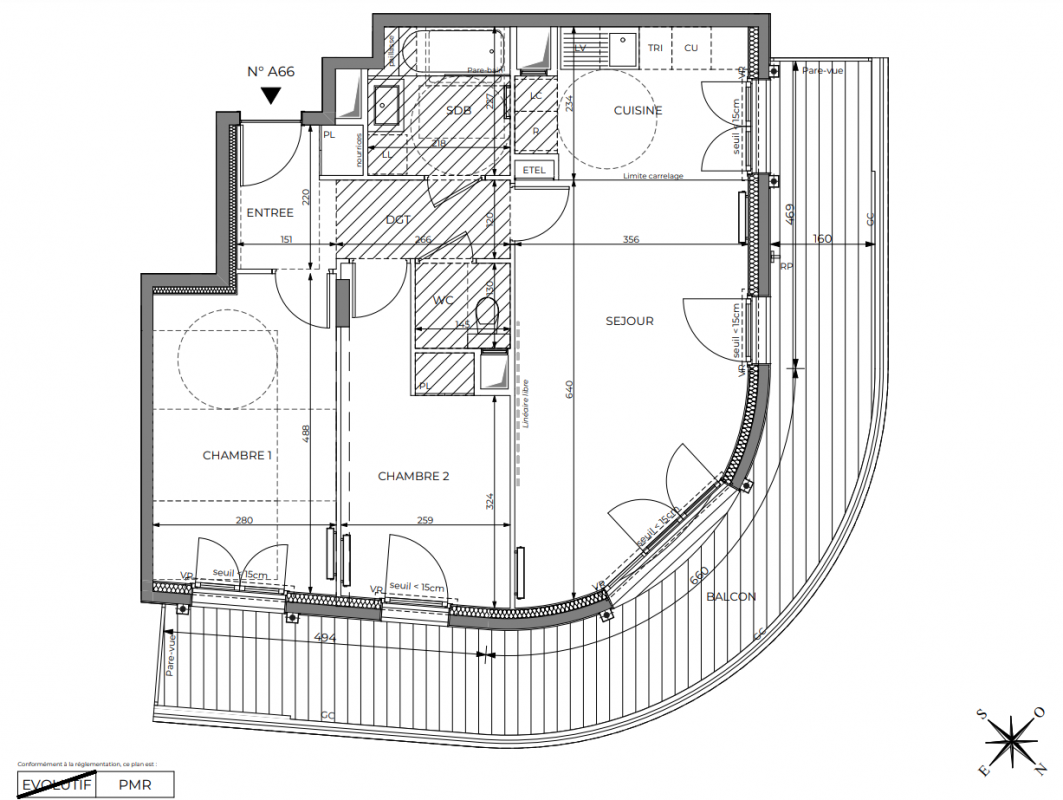 454 977€ Appt. T3 65.91m2 2ème