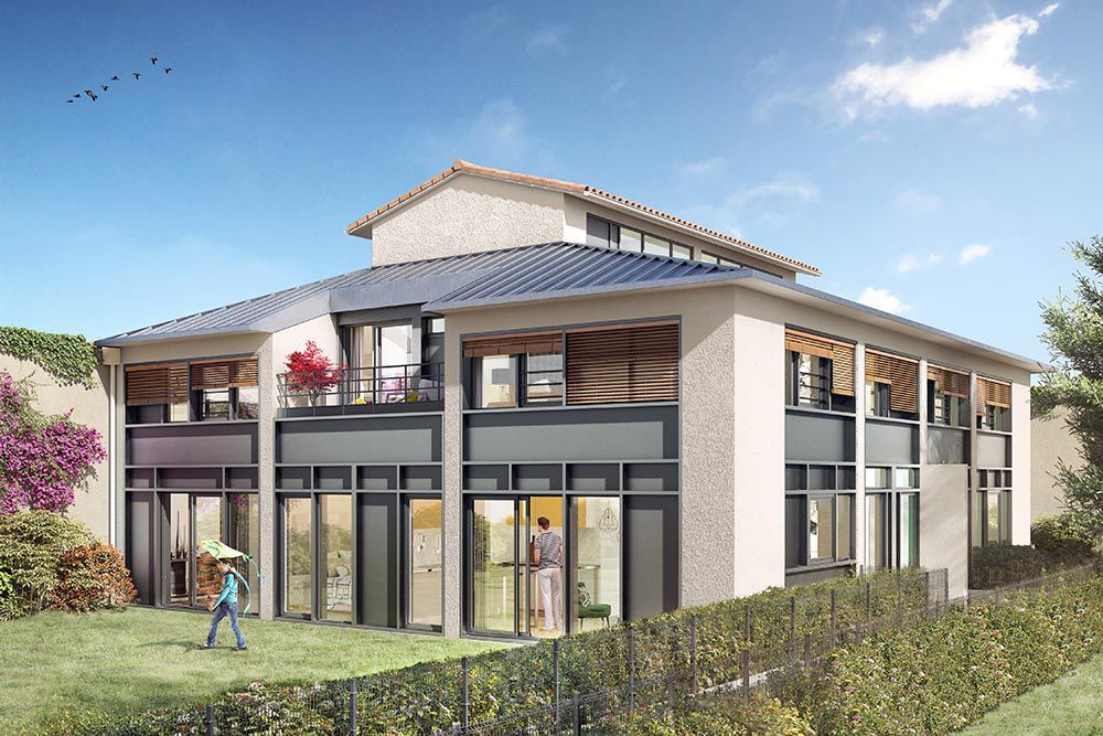 Description: Résidence comprenant des logements spacieux et modernes, dotés d’espaces extérieurs privatifs ; Conçue avec des matériaux naturels, dont la pierre de taille emblématique du Grou...