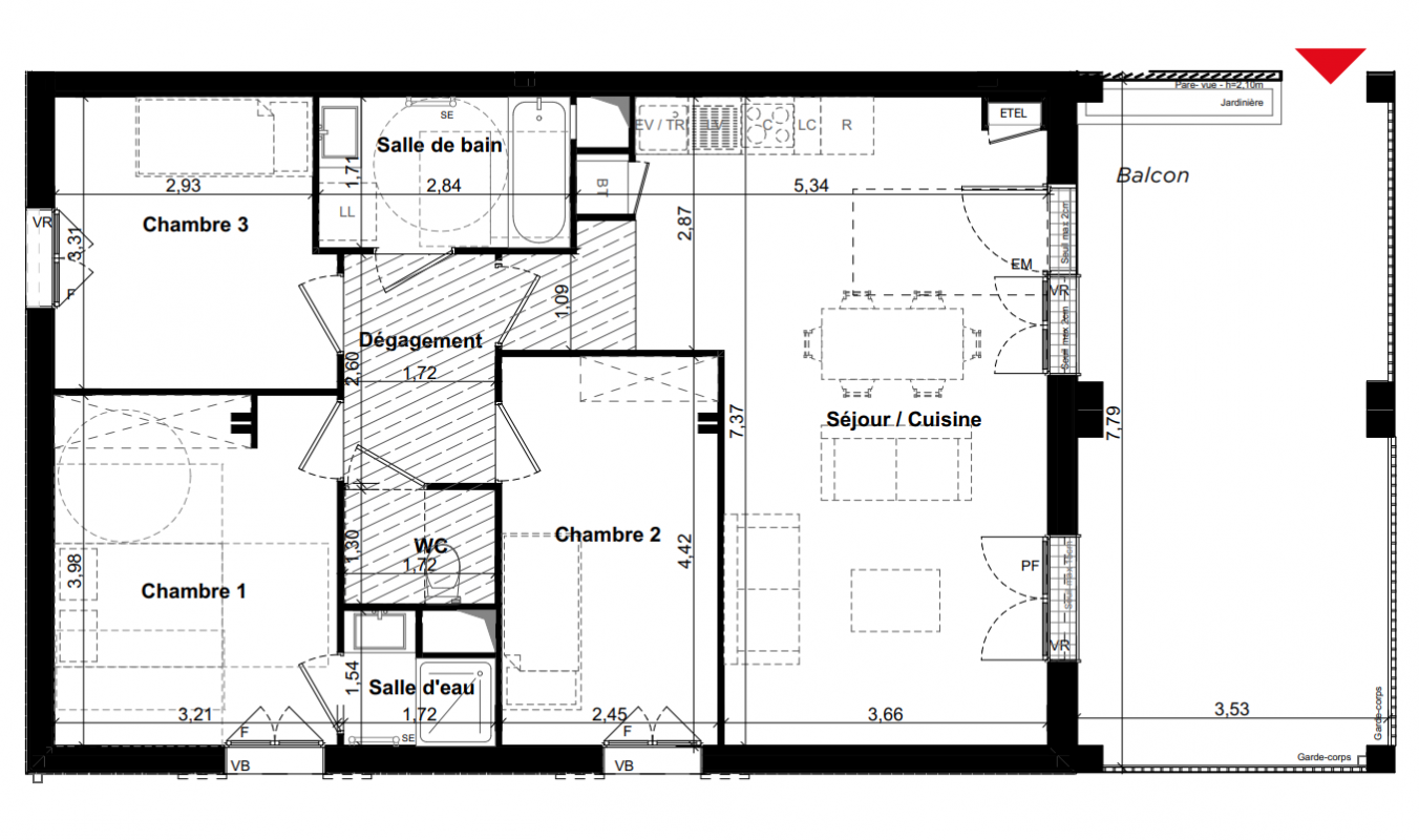 Les logements bénéficient de plans traversants Est-Ouest, favorisant la luminosité naturelle et le confort au quotidien.