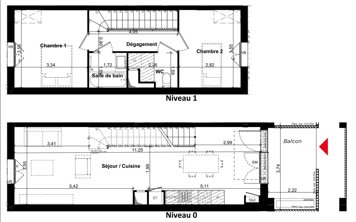 Les logements bénéficient de plans traversants Est-Ouest, favorisant la luminosité naturelle et le confort au quotidien.