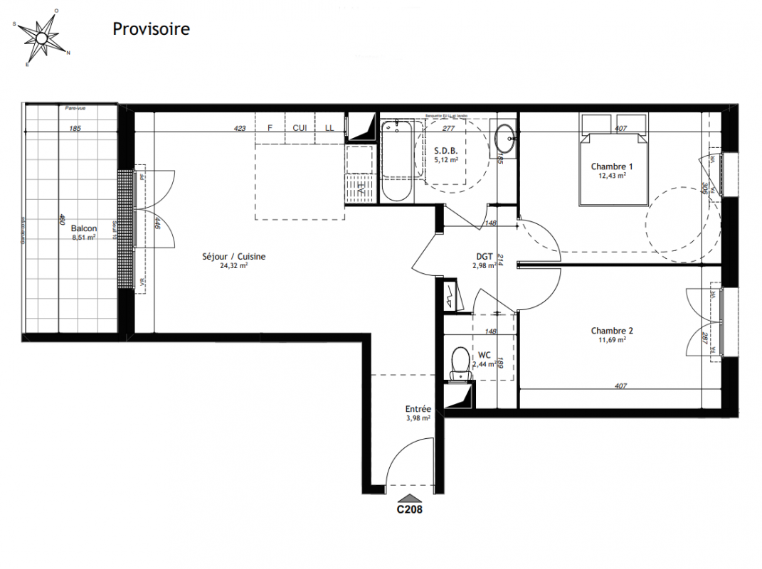 | Voir | Disponible | 262 900€ | C108 | Appt. | T3 | 62.96m2 | 1er | Disponible | 262 900€ | Voir |