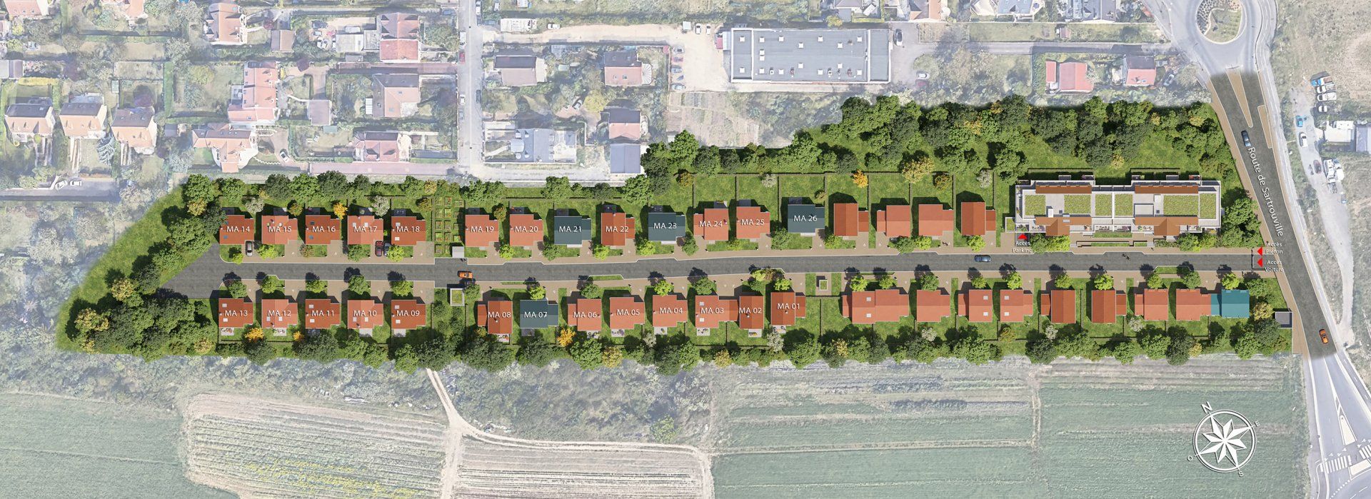 En lisière de la célèbre plaine maraîchère de Montesson, cette réalisation intimiste propose des maisons individuelles de 4, 5 ou 6 pièces, de 100 à 130 m². Les logements, aux prestations raffinées, offrent de vastes espaces de vie traversants, une suite parentale avec salle d'eau privative et des chambres spacieuses. Chaque maison se prolonge par un jardin privatif et une terrasse. Idéalement située, la résidence permet de rejoindre la gare de Sartrouville en 9 minutes à vélo (RER A et Transilien J/L), menant à La Défense en 17 minutes et Paris Saint-Lazare en 29 minutes. Le centre-ville et ses commerces sont accessibles en 10 minutes à vélo.