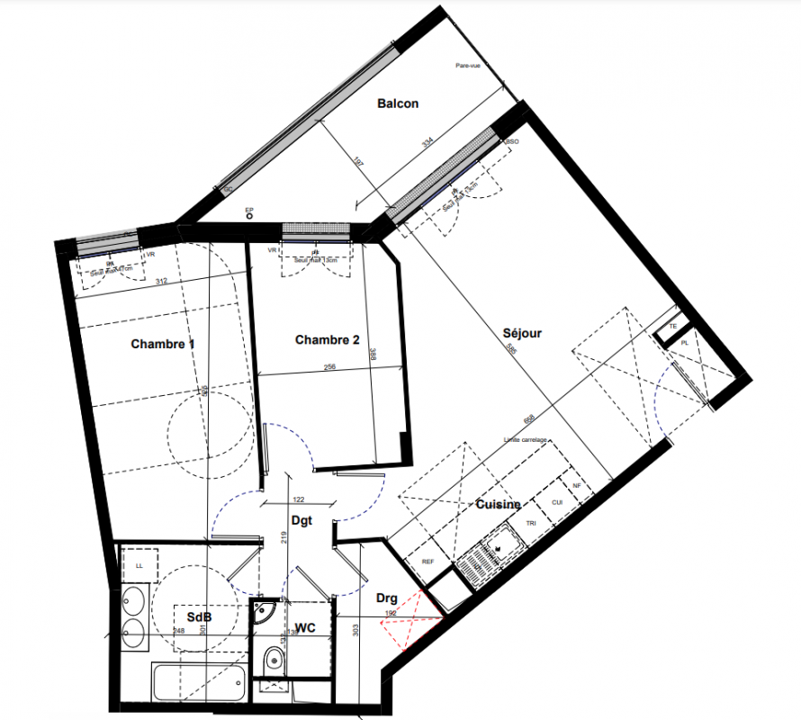 554 000€ Appt. T3 58.6m2 0-RDC