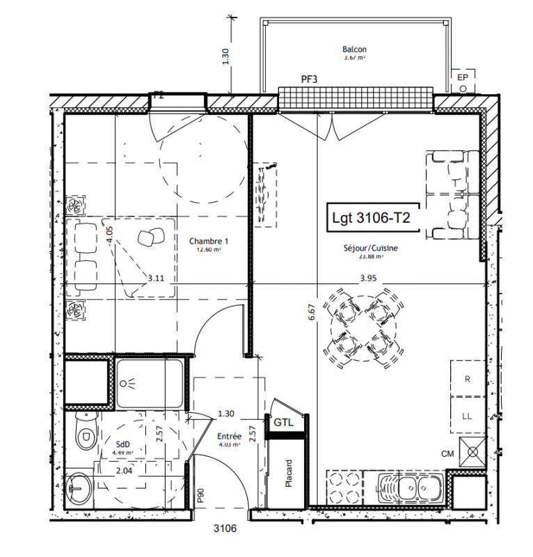 388 999€ Appt. T3 50m2 2ème