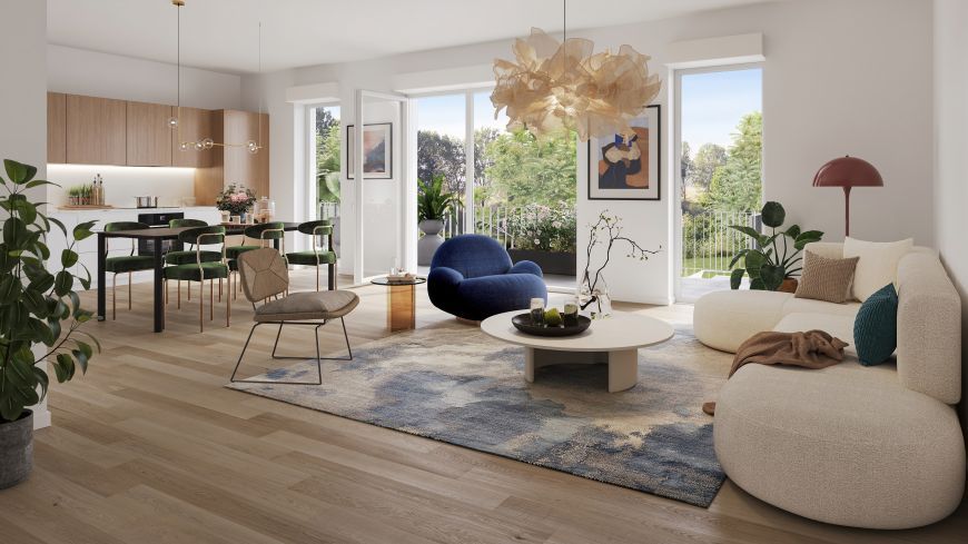La résidence propose des appartements du studio au 5 pièces, avec un espace extérieur pour la majorité des appartements. Ils ont été pensés et agencés pour proposer un cadre de vie confortable et ergonomique : séjour spacieux, ensoleillement optimal, espace extérieur prolongeant le logement. Ils profitent de la règlementation RE2020 (1) leur assurant une haute performance économique et énergétique.
