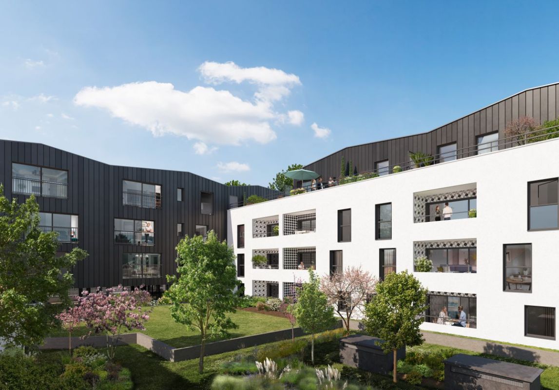 L’architecture contemporaine et élégante de CÔTÉ CANAL, avec son bardage métallique et ses toitures inclinées, compose un ensemble harmonieux de deux bâtiments reliés par un hall accueillant et un porche. Le tout s’organise autour d’un cœur d’îlot paysager, largement ouvert à la lumière, propice au calme et à la détente.