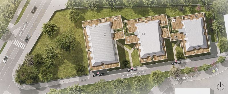 Chaque logement dispose de beaux espaces extérieurs. Au dernier étage, les duplex T4 dotés de hauts plafonds, sont de véritables villas sur le toit et offrent une vue imprenable sur les Pyrénées depuis leurs vastes terrasses.