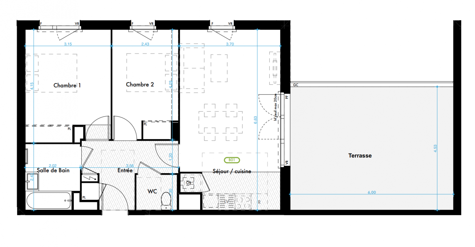 | Voir | Disponible | 294 300€ | A01 | Appt. | T3 | 65.28m2 Le bon plan | 0-RDC | Disponible | 294 300€ | Voir |