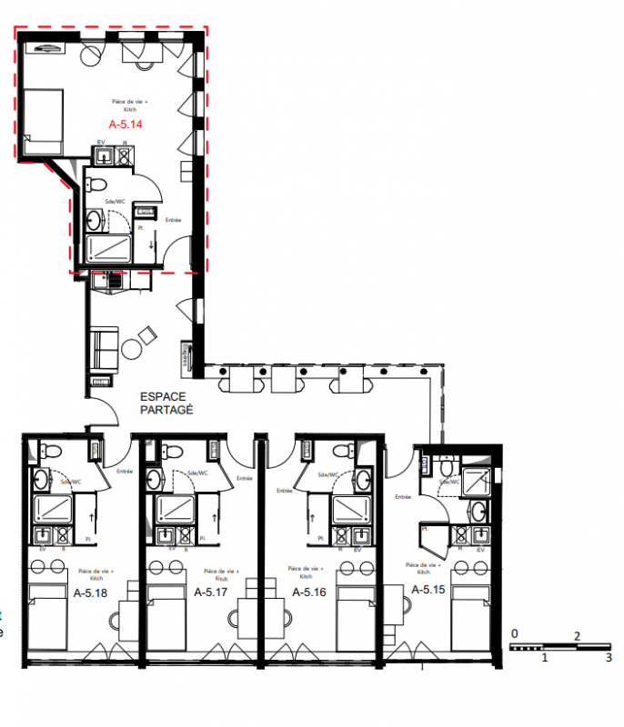 Composée de 112 unités d’hébergement, réparties dans 84 appartements du T1 au T10 (colocation pour 9 personnes), la résidence offre également des espaces communs chaleureux. À l’intérieur une salle de détente et une salle de fitness permettent aux étudiants de se retrouver et partager des moments de convivialité. À l’extérieur, les résidents pourront profiter de la terrasse commune et de se détendre autour d’une partie de pétanque ou de ping-pong.