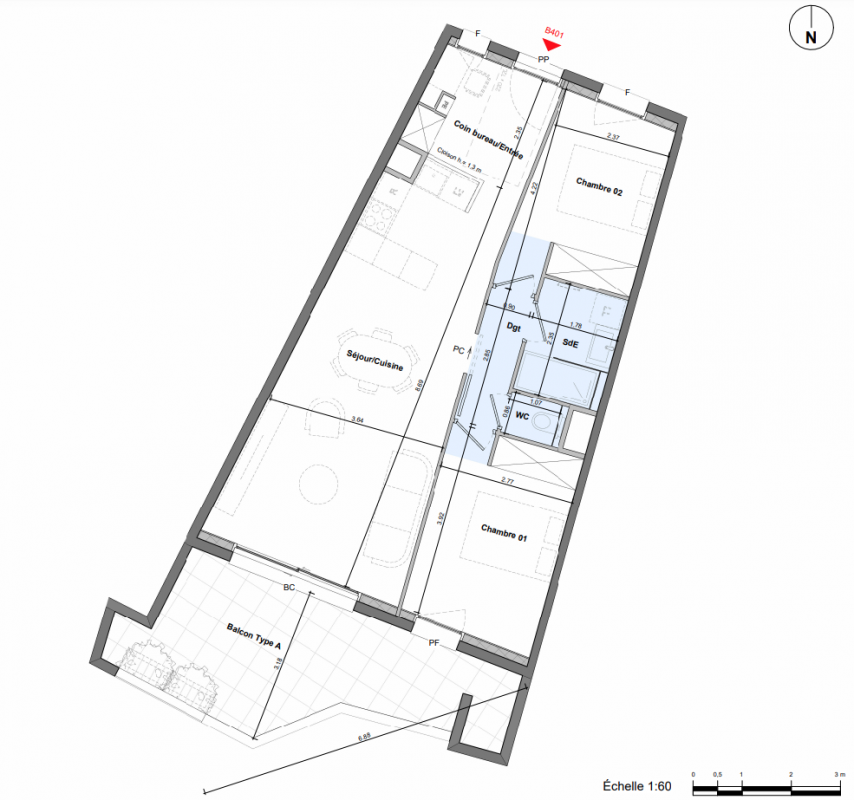 363 900€ Appt. T3 63.12m2 5ème